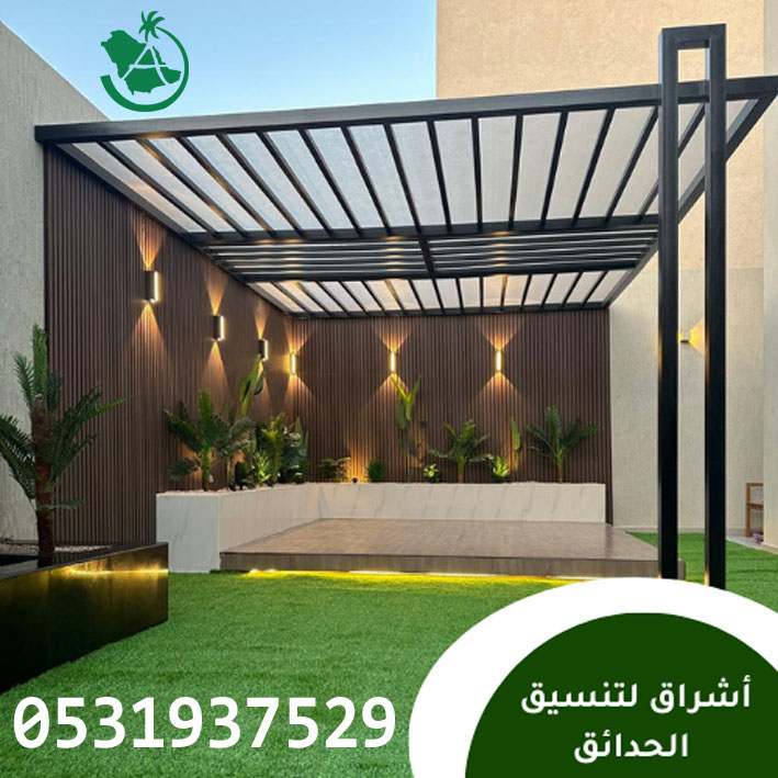 تنسيق ديكورات الحدائق مظلات و جلسات خارجية