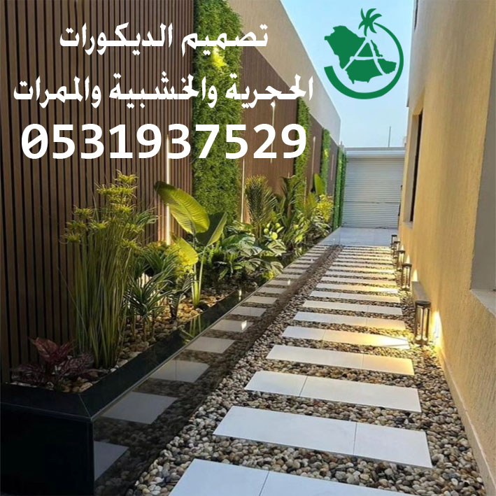 تصميم الديكورات الحجرية والخشبية والممرات