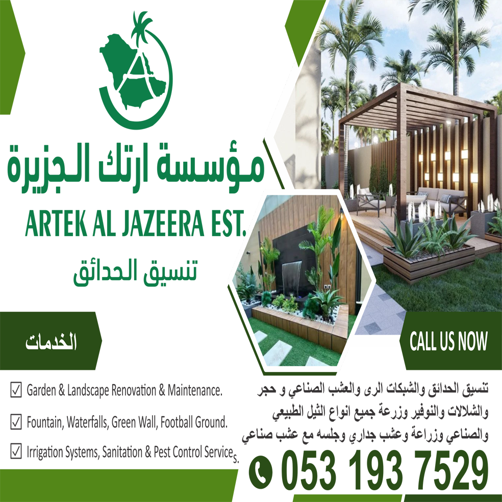 مؤسسة ارتك الجزيرة - تنسيق الحدائق والشبكات الرى